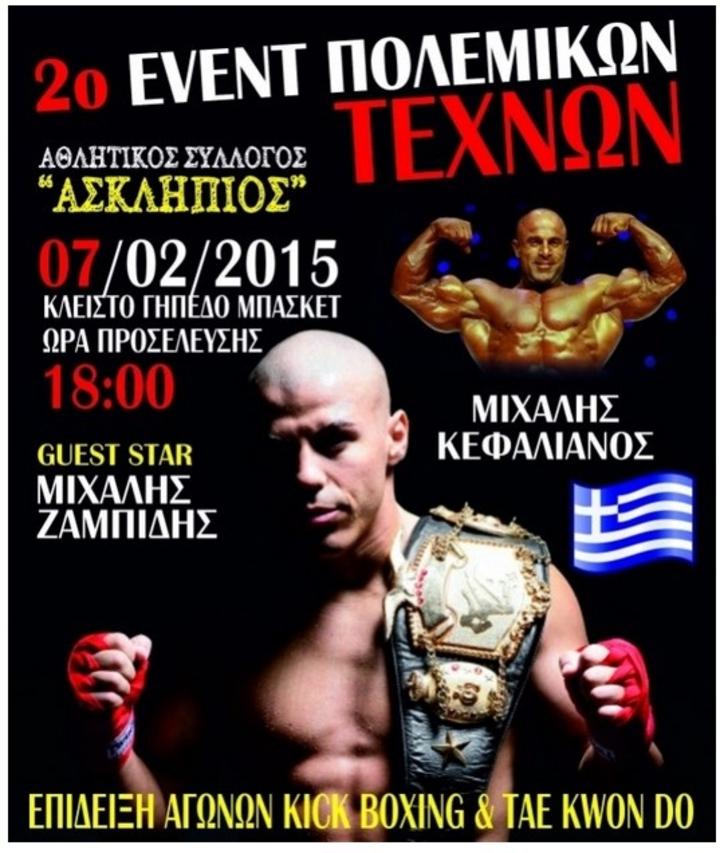 O A.Σ. “Ασκληπιός”, μ’ αφορμή τη διοργάνωση του 2ου event πολεμικών τεχνών, με επιδείξεις Kick Boxing - Τae Κwon Do, που θα διεξαχθεί στο Κλειστό Γυμναστήριο Κω, το Σάββατο 7/2, με ώρα έναρξης 18:00, έχει την τιμή να σας προσκαλέσει τόσο στην εκδήλωση, όσο και στη συνέντευξη τύπου, που θα γίνει την ίδια ημέρα στις 12:00 στο “Spitaki.”