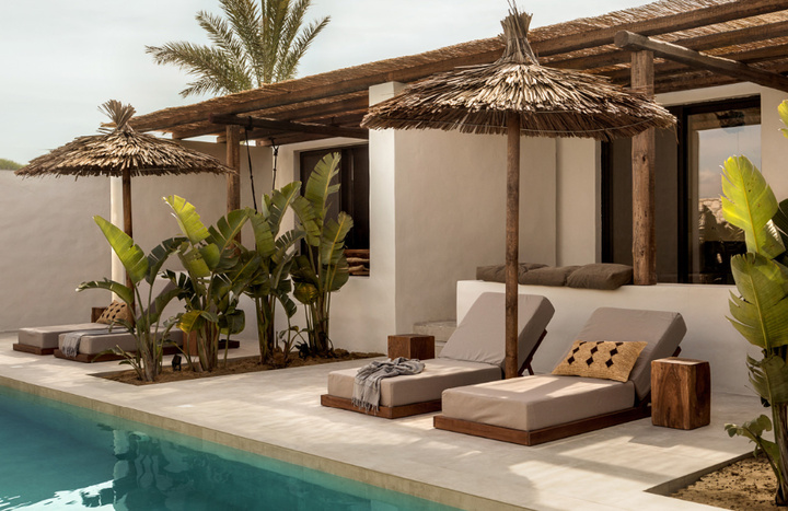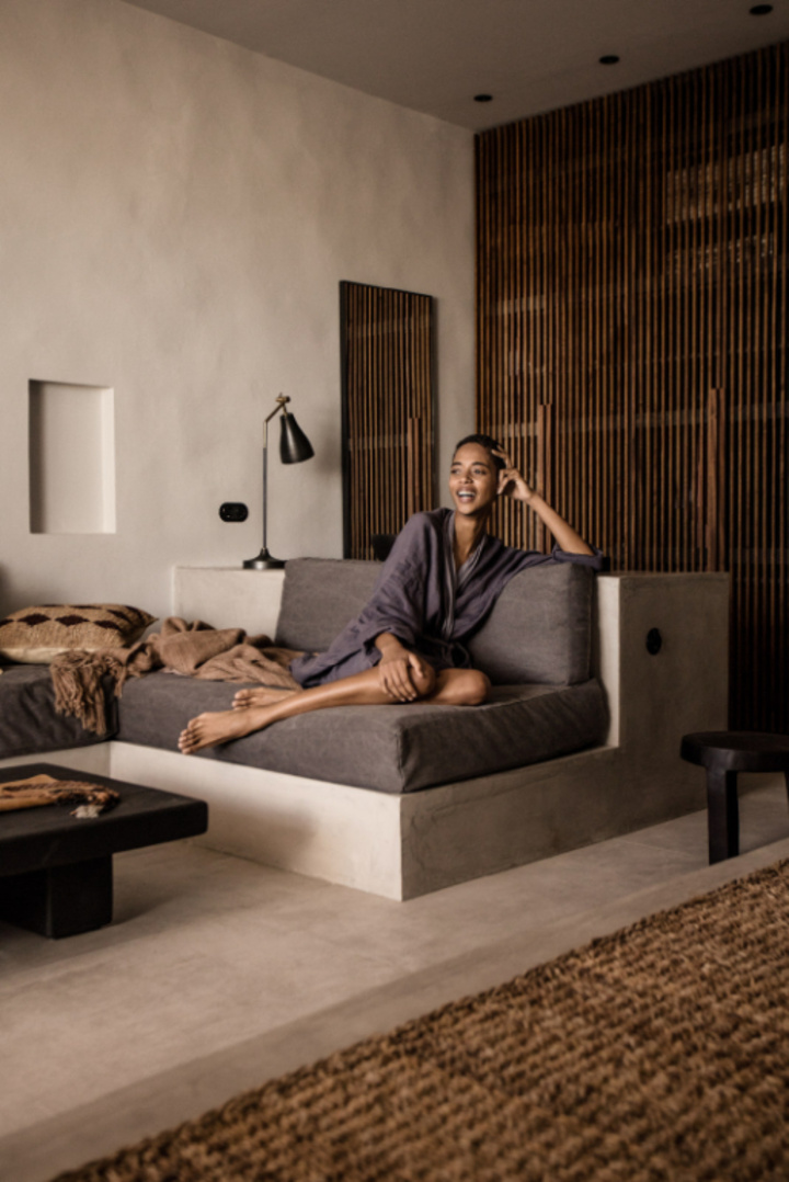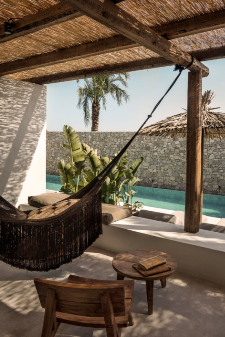 Σύμφωνα με την εταιρία, το ντιζάιν επηρεάστηκε από τα κυβιστικά κτίρια στο νησί, ενώ η επίπλωση από τις καθαρές γραμμές του μοντερνισμού στα μέσα του αιώνα σε αντίθεση με την άγρια και φυσική υφή και τα εξωτικά χειροποίητα αξεσουάρ.