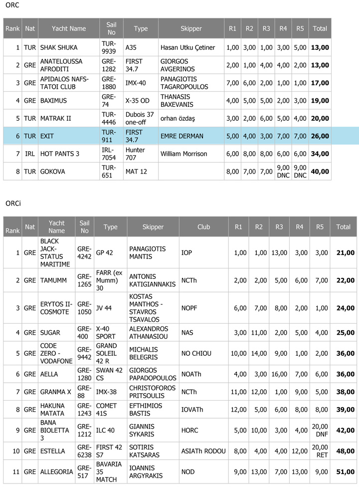 Τα τελικά αποτελέσματα της Aegean Regatta