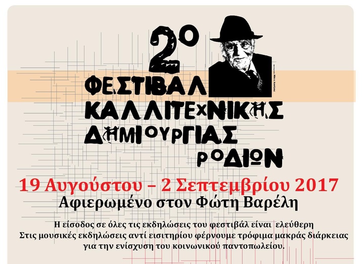 Στις 2 Σεπτεμβρίου 2017, ολοκληρώθηκε το 2ο Φεστιβάλ Καλλιτεχνικής Δημιουργίας Ροδίων που ήταν αφιερωμένο στον μεγάλο Δάσκαλο , λογοτέχνη, ποιητή, μουσικό και εικαστικό Φώτη Βαρέλη.