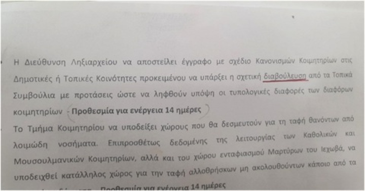 Εξαιτίας αυτής της νοοτροπίας, δεν προέβη σε διαβούλευση του Κανονισμού Λειτουργίας Κοιμητηρίων Ρόδου όπως έχω ήδη καταγγείλει, ενώ με απίστευτο θράσος παρουσίασε έγγραφο στο ίδιο κοινωνικό δίκτυο– το οποίο μάλλον αφορά κανονισμό παλαιότερης δημοτικής αρχής- αγνώστων στοιχείων, προκειμένου να «αποδείξει» ότι έκανε διαβούλευση, επιχειρώντας να «απαντήσει» στις καταγγελίες μου.