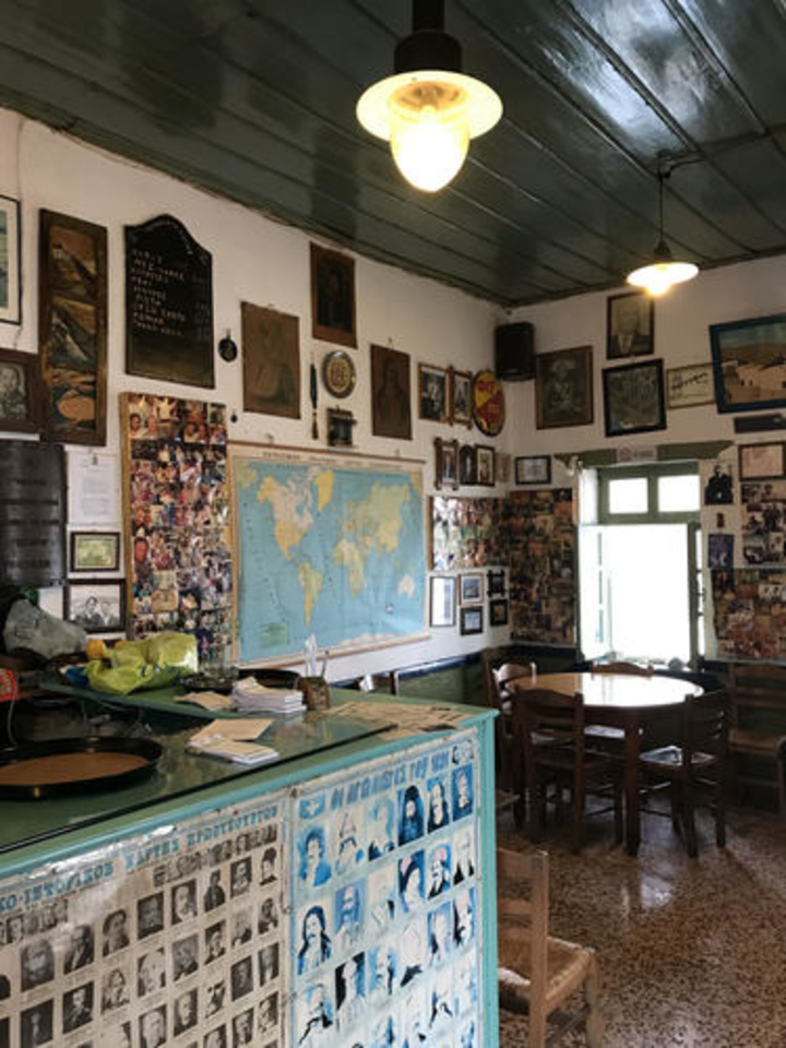 Το χταπόδι που ψήνεται μαζί με τις σουπιές, στη ψησταριά στην είσοδο του καφενείου, είναι ο μεζές που σε οδηγούσε στο κτίριο απέναντι από το Δημαρχείο ακόμη και με κλειστά μάτια. Τα γλέντια με τη συμμετοχή ντόπιων και τουριστών, Ελλήνων και ξένων, έχουν αφήσει εποχή και συζητιούνται διαχρονικά. Αν μπορούσαν να μιλήσουν οι αιωνόβιοι τοίχοι του θα έλεγαν ιστορίες για τα χιλιάδες λίτρα ούζου, τσίπουρου, κρασιού και μπύρας που έχουν καταναλωθεί για να λυθούν οι γλώσσες και να πουν ιστορίες για τόπους μακρινούς, για έρωτες ομολογημένους και ανομολόγητους.