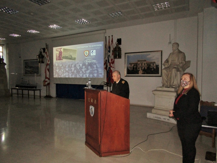 Στη συνέχεια ο Διευθυντής Σπουδών Πλοίαρχος κ. Νικόλαος Πατσάκης (ΠΝ), επαίνεσε με ιδιαίτερα κολακευτικά λόγια το έργο της πολιτιστικής ομάδας «Αρχιπέλαγος» και αναφέρθηκε στην ανάγκη της ιστορικής μνήμης αλλά και ιστορικής συνέχειας.