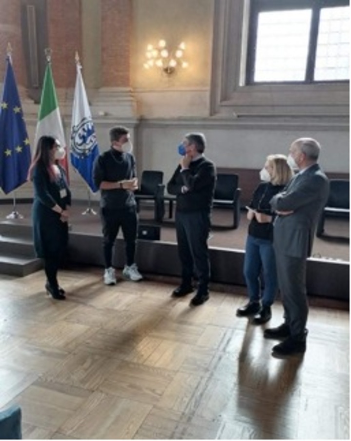 Αποκορύφωμα της επίσκεψης εκεί ήταν η συνάντησή μας με τον Δήμαρχο της πόλης κύριο Emilio del Bono στο Δημαρχείο, όπου μαθητές και εκπαιδευτικοί ενημερώθηκαν για ζητήματα του Δήμου της Μπρέσια, αναπτύχθηκαν εποικοδομητικοί διάλογοι και ανταλλάχθηκαν απόψεις.