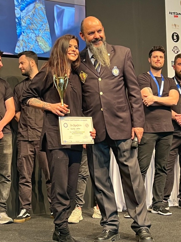 Τη Δευτέρα 13/02 επίσης, κέρδισε το 2ο βραβείο στον διαγωνισμό "Best Non-Αlcoholic cocktail 2023" με το κοκτέιλ “The Citrus Land” με φρέσκο ανανά, κάρδαμο, κουμκουάτ και αφρό από εσπεριδοειδή.