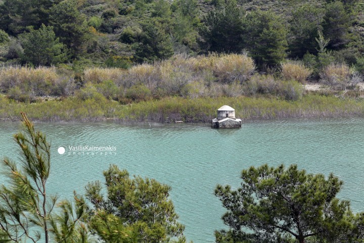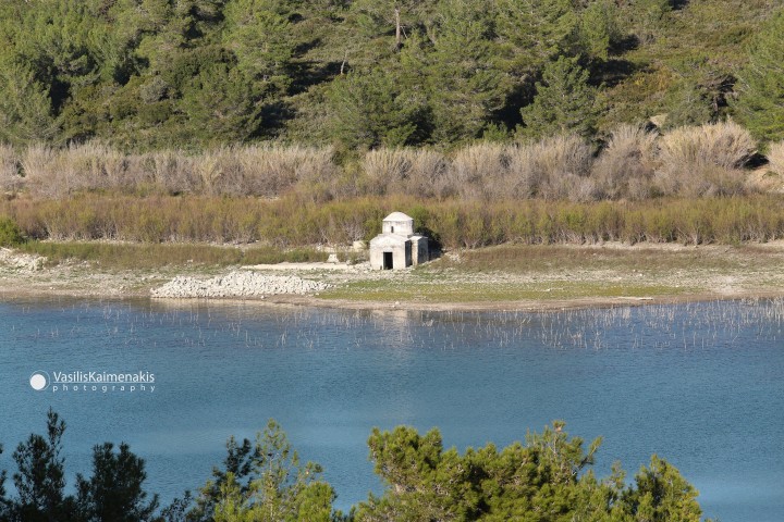 Το εκκλησάκι στο φράγμα της Απολλακιάς, λειτουργεί σαν υδροδείκτης της στάθμης του νερού.