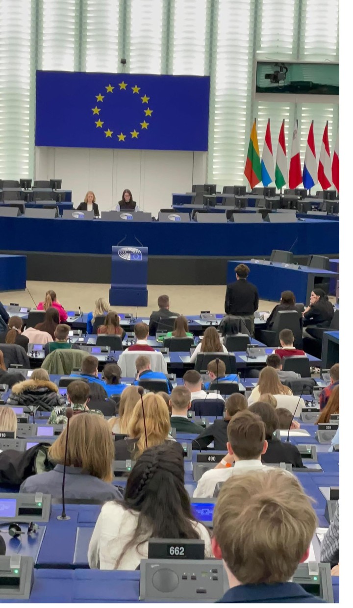 Την Πέμπτη 30/03/2023 πραγματοποιήθηκε στην έδρα του Ευρωπαϊκού Κοινοβουλίου στο Στρασβούργο η ημερίδα Euroscola. Πρόκειται για ένα πρόγραμμα προσομοίωσης της λήψης αποφάσεων των θεσμικών οργάνων της Ευρωπαϊκής ένωσης, στο οποίο συμμετέχουν μαθητές από σχολεία των κρατών – μελών της Ευρωπαϊκής ένωσης και έχουν τη δυνατότητα να εξοικειωθούν με τις διαδικασίες και τις πρακτικές λειτουργίας του Ευρωπαϊκού Κοινοβουλίου.