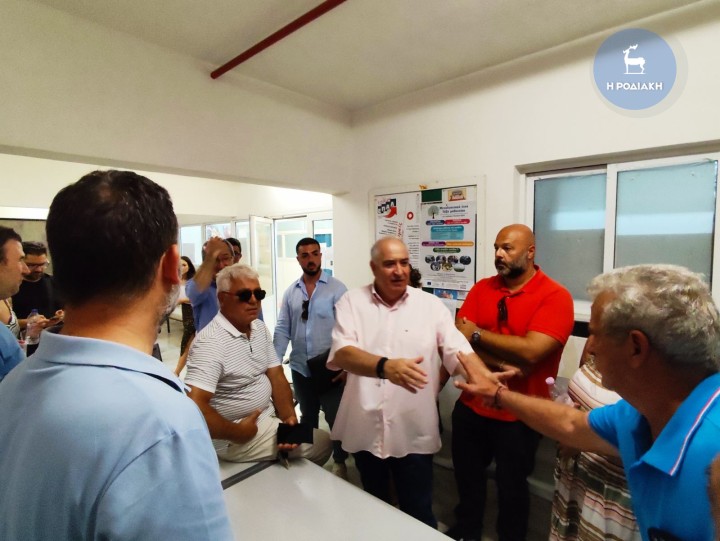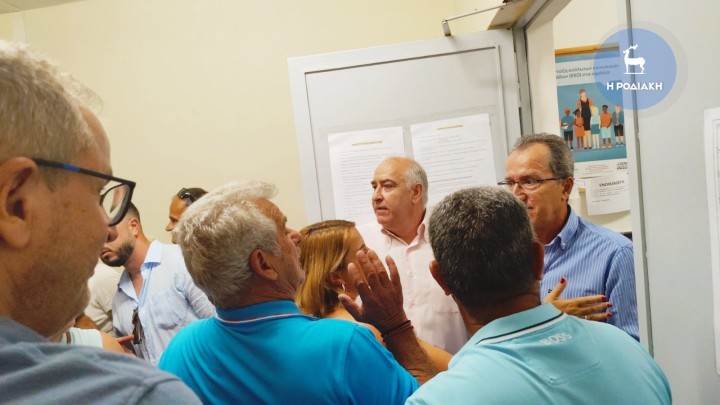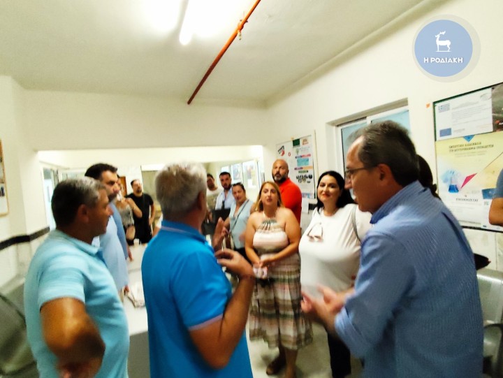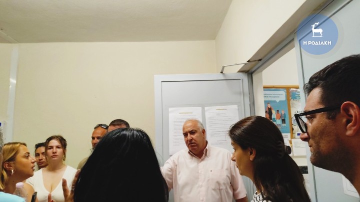 Εκπρόσωποι των Συλλόγων, με τη συμπαράσταση και του Νομαρχιακού Τμήματος της ΑΔΕΔΥ Δωδεκανήσου, βρέθηκαν σήμερα στις 12:00 στα γραφεία της Α'θμιας προκειμένου να συζητήσουν με τον διευθυντή κ. Χαράλαμπο Ψαρά για την εξεύρεση λύσης στο αίτημά τους να μην υποβαθμιστούν τα σχολεία.