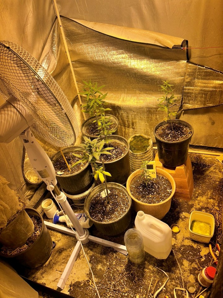 • 6 φυτά κάνναβης, εντός ειδικά διαμορφωμένου δωματίου μέσα σε γλάστρες.