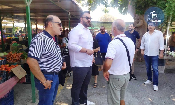 Επίσκεψη στη Λαϊκή Αγορά του Αγίου Δημητρίου πραγματοποίησε χθες ο δήμαρχος Ρόδου Αλέξανδρος Κολιάδης, συνοδευόμενος από μέλη της δημοτικής αρχής και συγκεκριμένα από τον πρόεδρο του δημοτικού συμβουλίου, Κυριάκο Κασάπη, τον αντιδήμαρχο Τουρισμού και Πολιτισμού Γιώργο Τόππο, τον αντιδήμαρχο Επικοινωνίας Γιώργο Πάττα, τον αντιδήμαρχο Κυκλικής Οικονομίας Δημήτρη Καρατζιά, τον αντιδήμαρχο Επιχειρηματικότητας και Εμπορίου και Δ.Ε. Ρόδου Νίκο Τσούλλο, τον εντεταλμένο Πρασίνου και Αστικής Ανάπτυξης Γιάννη Μητσού, και τον διευθύνοντα σύμβουλο της «ΚΟΛΟΣΣΟΣ 2047 Α.Ε.», κο Γιώργο Υψηλάντη.