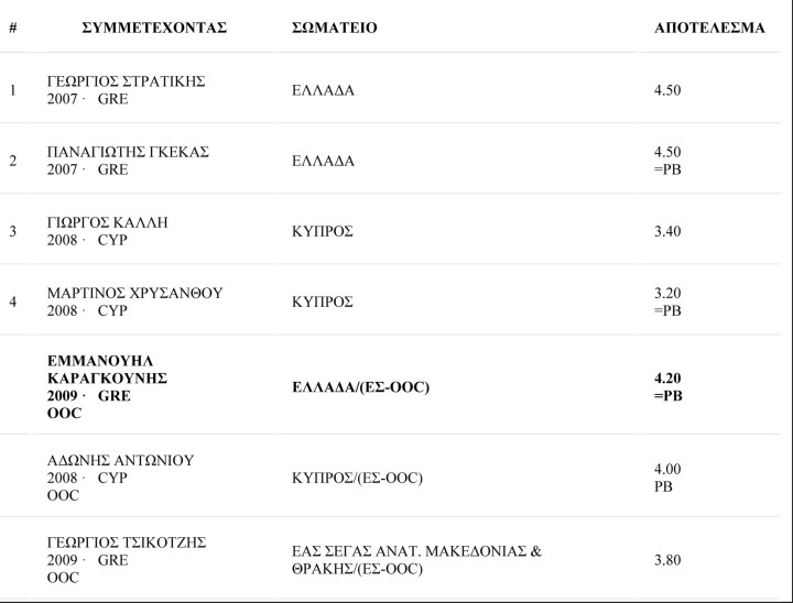 Στα 400 μ. ο Σπύρος- Γιάννης Κονιδάρης διένυσε την απόσταση σε 49.17 και πέτυχε ατομικό ρεκόρ, ενώ στο τριπλούν η Δέσποινα Πάσιου ήταν πρώτη με 12,49 μέτρα.