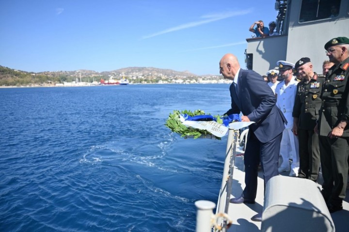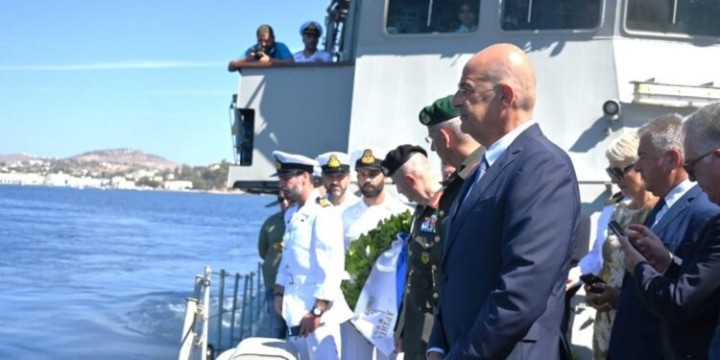 Ο Νίκος Δένδιας βρέθηκε χθες στη Λέρο για τις εκδηλώσεις μνήμης για την 81η επέτειο από τη βύθιση του Α/Τ «Βασίλισσα Όλγα» από γερμανικά βομβαρδιστικά αεροσκάφη, η οποία είχε ως αποτέλεσμα τον θάνατο του Κυβερνήτη Πλωτάρχη Γεώργιου Μπλέσσα και άλλων 69 μελών του πληρώματος.