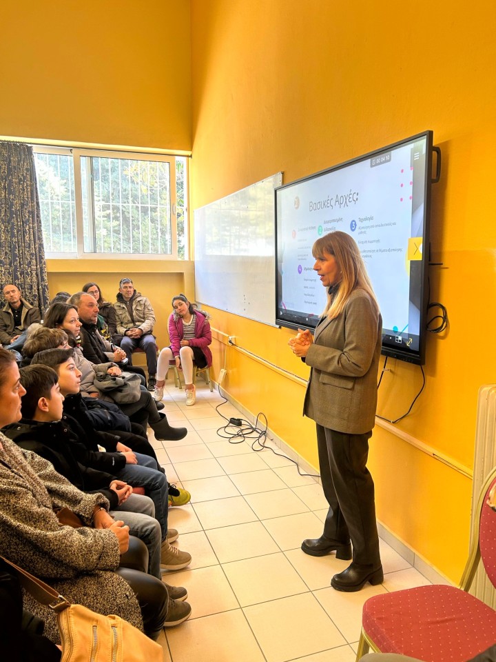 Οι επισκέπτες ξεναγήθηκαν στους χώρους του Σχολείου και στη συνέχεια συγκεντρώθηκαν σε ειδικά διαμορφωμένη αίθουσα, όπου ο διευθυντής του Σχολείου παρουσίασε το όραμα, την κουλτούρα και τη λειτουργία του Σχολείου.