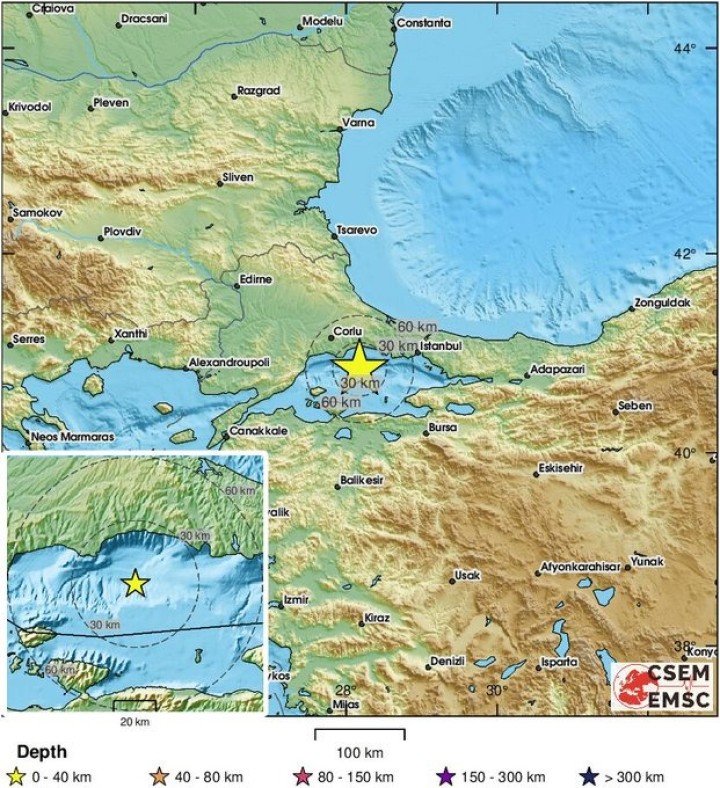 Το επίκεντρο του σεισμού εντοπίζεται στη Θάλασσα του Μαρμαρά.