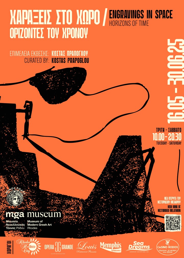Το Μουσείο Νεοελληνικής Τέχνης δήμου Ρόδου παρουσιάζει την Παρασκευή, 16 Μαΐου 2025, την έκθεση «Χαράξεις στο Χώρο/Ορίζοντες του Χρόνου», μια αναδρομή στη διαχρονική παρουσία της χαρακτικής στον ελληνικό χώρο και την αισθητική της αποτύπωση πάνω στο φυσικό και το δομημένο περιβάλλον.