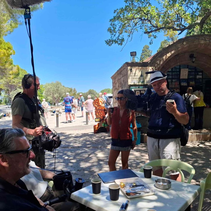 Το τηλεοπτικό συνεργείο της δημοφιλούς ταξιδιωτικής εκπομπής “Téacs Taistil” στο Ιρλανδικό κανάλι TG4 αποτελείται από τους Laura Heeney – δημοσιογράφο και παρουσιάστρια, τον Proinsias Ó Coinn δημοσιογράφο και παρουσιαστή από τη Νότια Armagh, με πάθος για τα ταξίδια και τις ανθρώπινες ιστορίες και τον Séaghan Ó Súilleabháin γνωστό ως @thekerrycowboy, αγρότη και εκπαιδευτικό με ενεργή παρουσία στα κοινωνικά δίκτυα. Σκηνοθέτης της εκπομπής και για τη Ρόδο είναι ο Maurice Sweeney και παραγωγός ο Mairead Tucker. Το τηλεοπτικό συνεργείο συμπληρώνουν τα μέλη Chloe Tynan, Michael O'Donovan, Alistair Fish και Finny Byrne.