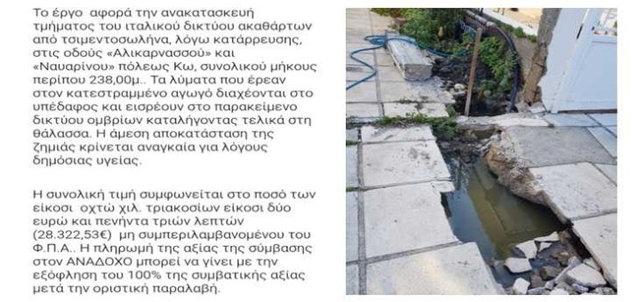 Β.φωτογραφία από την κατάσταση που είχαν περιέλθει οι αγωγοί αποχέτευσης στην οδό Μεγάλου Αλεξάνδρου και απόσπασμα της σύμβασης που υλοποιήσαμε για την ανακατασκευή τους.