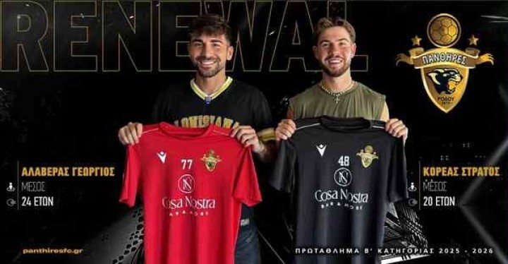 «Η διοίκηση της ομάδας μας είναι στην ευχάριστη θέση να ανακοινώσει την παραμονή δύο ακόμα ποδοσφαιριστών. Ο λόγος για τον 24χρονο μέσο, Γεώργιο Αλαβέρα, που ανανέωσε για δεύτερη σερί χρονιά και τον 20χρονο, επίσης μέσο, Στράτο Κορέα, που παραμένει για τρίτη διαδοχική σεζόν στην ομάδα μας. Ευχόμαστε και στους δύο υγεία και μια παραγωγική σεζόν γεμάτη επιτυχίες.»