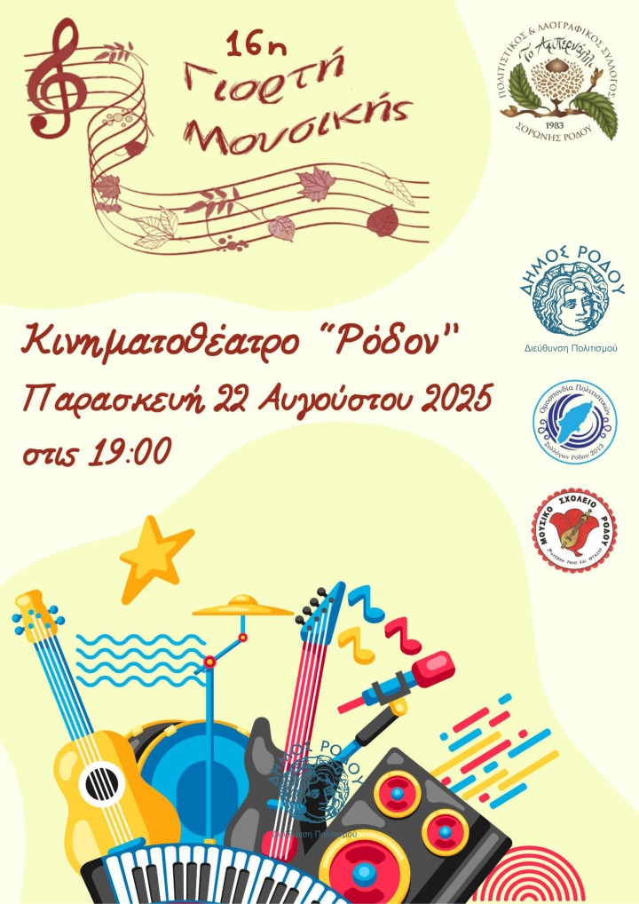 Η μουσική, αυτή η παγκόσμια γλώσσα, ενώνει τους ανθρώπους ξεπερνώντας σύνορα, χρόνους και διαφορές. Μελωδίες και ρυθμοί που ταξιδεύουν, συγκινούν και φέρνουν τους ανθρώπους πιο κοντά, θα γεμίσουν για ακόμη μια χρονιά την καρδιά της Ρόδου.