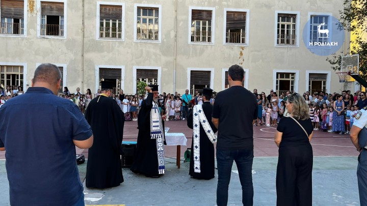 Με τον καθιερωμένο αγιασμό ξεκίνησε σήμερα το πρωί, Πέμπτη, η νέα σχολική χρονιά 2025-26 στα σχολεία της Ρόδου. Μαθητές όλων των βαθμίδων — από τα δημοτικά έως τα γυμνάσια και τα λύκεια — έφτασαν μαζί με τους γονείς και τους κηδεμόνες τους στους σχολικούς χώρους, δημιουργώντας μια ζεστή και γιορτινή ατμόσφαιρα.