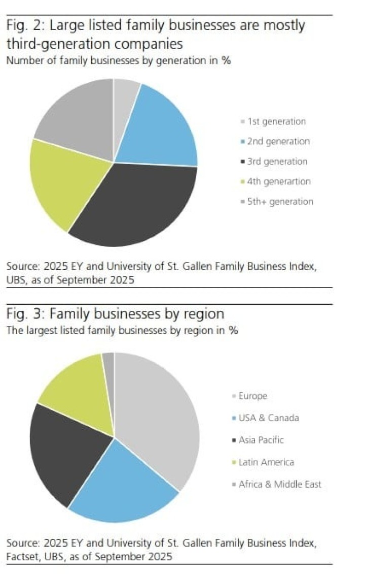 Η UBS εστιάζει στον Family Business Index (EY – Πανεπιστήμιο St. Gallen), που παρακολουθεί τις 500 μεγαλύτερες οικογενειακές εταιρείες παγκοσμίως. Οι περισσότερες είναι πλέον στη δεύτερη, τρίτη ή και τέταρτη γενιά ιδιοκτησίας, με θεσμοθετημένους κανόνες διακυβέρνησης για να περιορίζονται οι ενδοοικογενειακές τριβές.