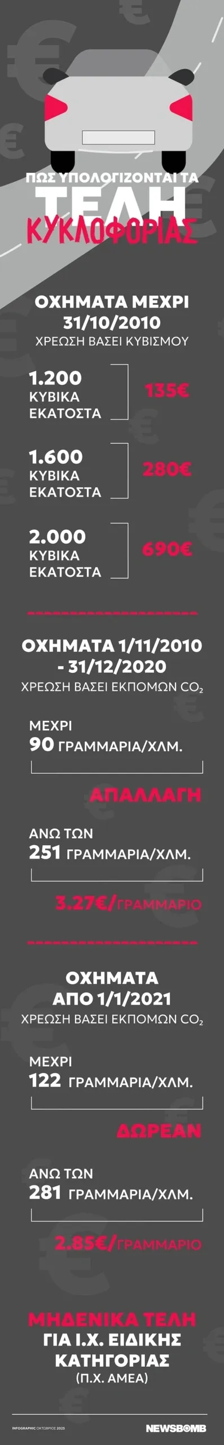 Πώς υπολογίζονται τα τέλη κυκλοφορίας