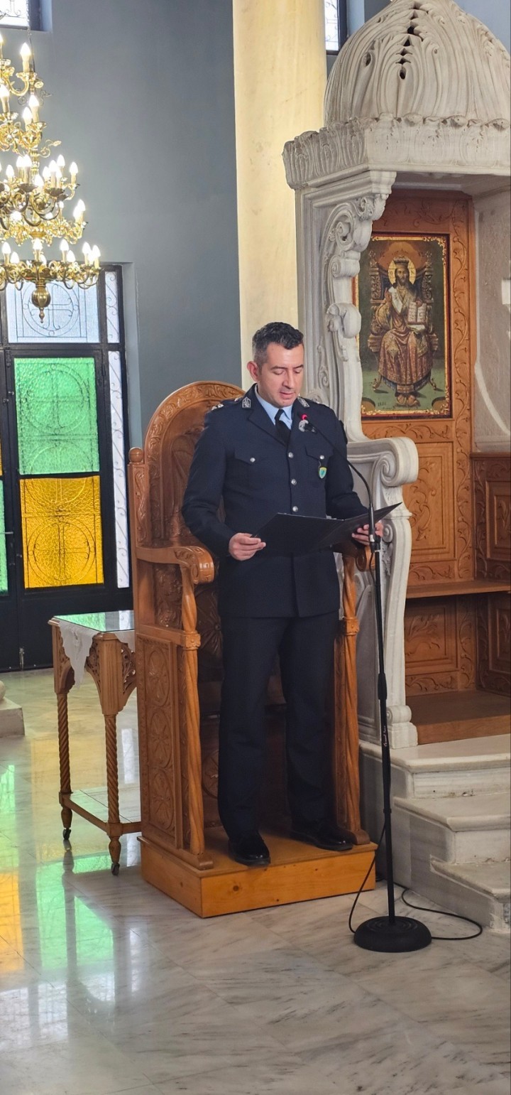 όπου, παρέστησαν εκπρόσωποι των Θρησκευτικών, Πολιτικών και Δικαστικών Αρχών, του Στρατού και Σωμάτων Ασφαλείας, τοπικών φορέων, επαγγελματικών ενώσεων και ενώσεων αποστράτων, καθώς και συνδικαλιστικοί φορείς του εν ενεργεία προσωπικού και αναγνώστηκε η Ημερήσια Διαταγή του Αρχηγού της Ελληνικής Αστυνομίας Αντιστράτηγου κ. Δημήτριου Μάλλιου.