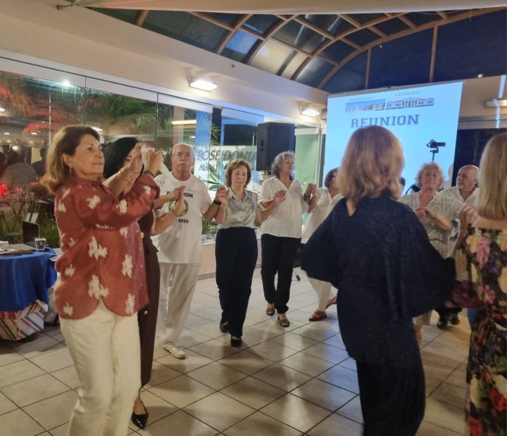 Συνολικά 124 «μαθητές» και 15 καθηγητές και από τα δύο σχολεία, συναντήθηκαν μετά από δεκαετίες, στο ξενοδοχείο Poseidonia γεμίζοντας την αίθουσα με γέλια, συγκίνηση και ζεστές αγκαλιές. Οι συμμαθητές θυμήθηκαν ιστορίες από τα μαθητικά τους χρόνια, αντάλλαξαν αναμνήσεις, τραγούδησαν, χόρεψαν και διασκέδασαν μέχρι αργά, αποδεικνύοντας πως ο χρόνος μπορεί να αλλάζει πρόσωπα, αλλά όχι τις καρδιές.