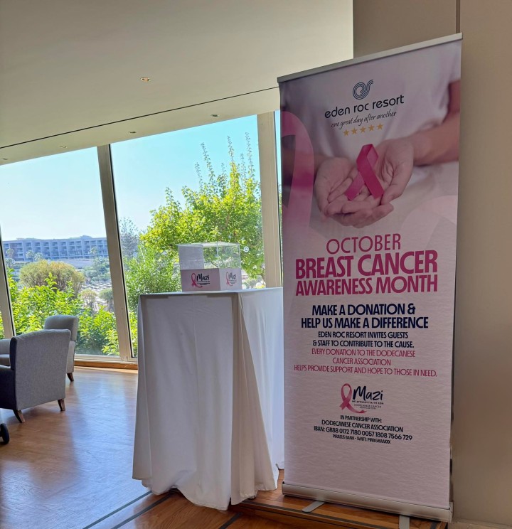 Ειδικότερα, στο πλαίσιο του μήνα ευαισθητοποίησης για τον καρκίνο του μαστού, η ομάδα του ξενοδοχείου, μαζί με επισκέπτες και συνεργάτες, συμμετείχε σε φιλανθρωπική πρωτοβουλία για τον Σύλλογο Καρκινοπαθών Ρόδου.