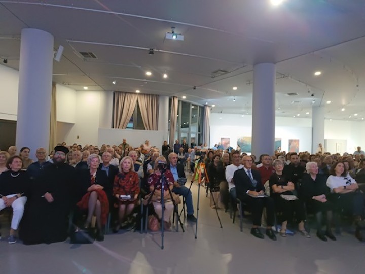 Ιδιαίτερη συγκίνηση προκάλεσε ο φλογερός χαιρετισμός του Καθηγητή του Πανεπιστημίου Friburg της Ελβετίας και φίλου του Γρηγόρη Παλλά, κ. Bruno Colpi, που όντας ο ίδιος Ελβετός μίλησε σε άπταιστα ελληνικά.
