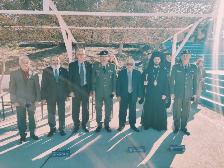 Στη φωτογραφία από δεξιά ο Διοικητής του 294 ΤΕ Ανχης (ΠΒ) Σκρέτας Ευστάθιος, ο Θεοφιλέστατος Επίσκοπος Ολύμπου κ. Κύριλλος,, ο Αντιπεριφερειάρχης κ. Κάλλιστος Διακογεωργίου, ο Υποδιοικητής της 95 ΑΔΤΕ Ταξίαρχος Πιστόλας Γιώργος, ο Πρόεδρος της Ένωσης Αποστράτων Αξιωματικών – Παράρτημα Ρόδου, κ. Μηνάς Παπαδάκης, και ο Πρόεδρος του Συνδέσμου Εφέδρων Καταδρομέων και Ιερολοχιτών Ρόδου, κ. Πανορμίτης Βιτσέντζος.