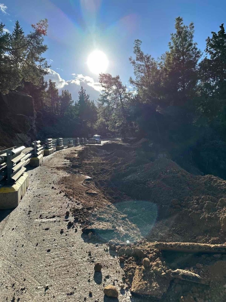 Συγκεκριμένα, βρίσκονται σε εξέλιξη εργασίες διαμόρφωσης των πρανών, σκυροδέτησης των τριγωνικών τάφρων, καθώς και κατασκευής τοίχων συγκράτησης, με στόχο την προστασία του δρόμου από υλικά που ενδέχεται να αποκολληθούν από τα πρανή. Παράλληλα, ξεκίνησε η τοποθέτηση αγωγών στα τεχνικά έργα, ενώ προχωρά και η σκυροδέτηση των τοίχων αντιστήριξης, ενισχύοντας τη συνολική θωράκιση της περιοχής.