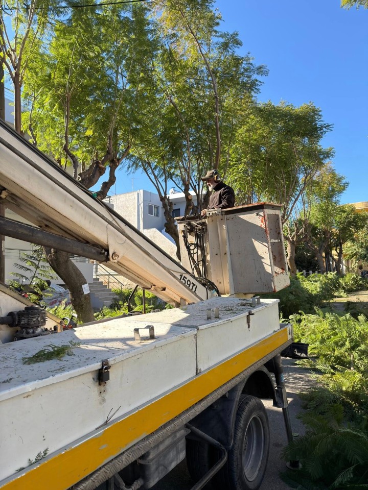 Σήμερα, Τρίτη 16 Δεκεμβρίου, τα συνεργεία της Υπηρεσίας Πρασίνου του δήμου Ρόδου πραγματοποιούν εργασίες κλαδέματος δέντρων και πρασίνου επί της οδού Ευαγόρα στο Ροδίνι.