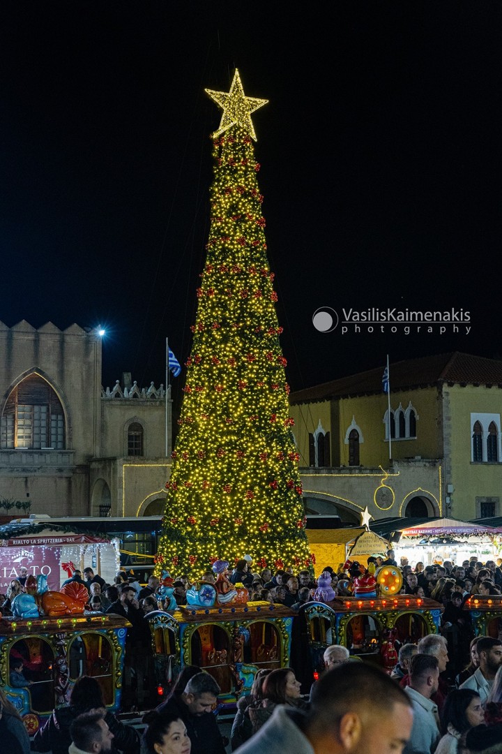 Σε εορταστικό κλίμα πραγματοποιήθηκε η φωταγώγηση του Χριστουγεννιάτικου δέντρου στην Πλατεία Ελευθερίας, μπροστά από το Δημαρχείο Ρόδου, σηματοδοτώντας και επίσημα την έναρξη της εορταστικής περιόδου στην πόλη.