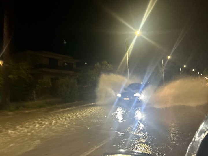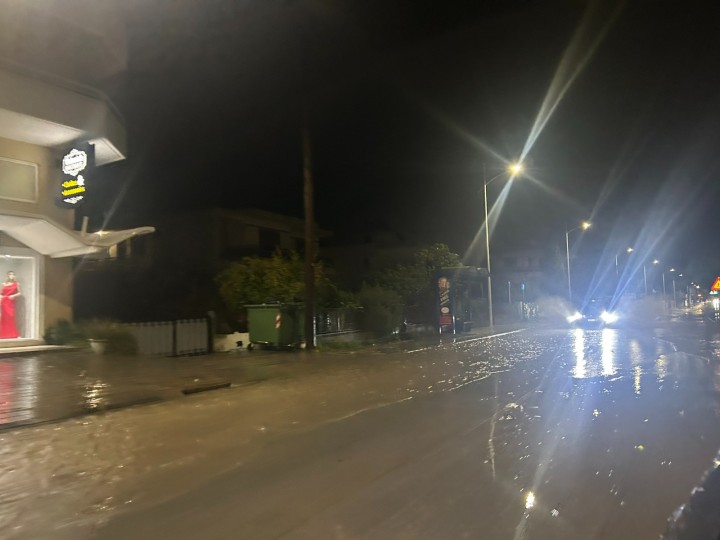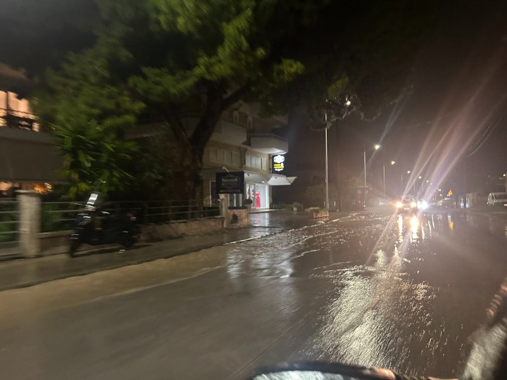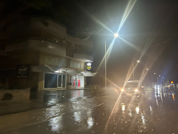 Ισχυρή νεροποντή μετέτρεψε πριν από λίγο τους δρόμους σε... ποτάμια στην περιοχή της Ιαλυσού
