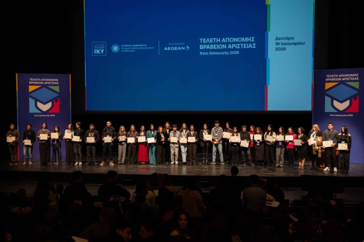 Με την υποστήριξη του υπουργείου Παιδείας, Θρησκευμάτων και Αθλητισμού, το Ίδρυμα Κρατικών Υποτροφιών (ΙΚΥ) πραγματοποίησε τη Δευτέρα 19 Ιανουαρίου 2026, στο Μέγαρο Μουσικής Αθηνών, επίσημη τελετή απονομής των Βραβείων Αριστείας στους/στις πρωτεύσαντες/σες εισαχθέντες/είσες των σχολών και τμημάτων των ιδρυμάτων τριτοβάθμιας εκπαίδευσης της χώρας. Τα βραβεία απένειμε η υπουργός Παιδείας, Θρησκευμάτων και Αθλητισμού, κα. Σοφία Ζαχαράκη.