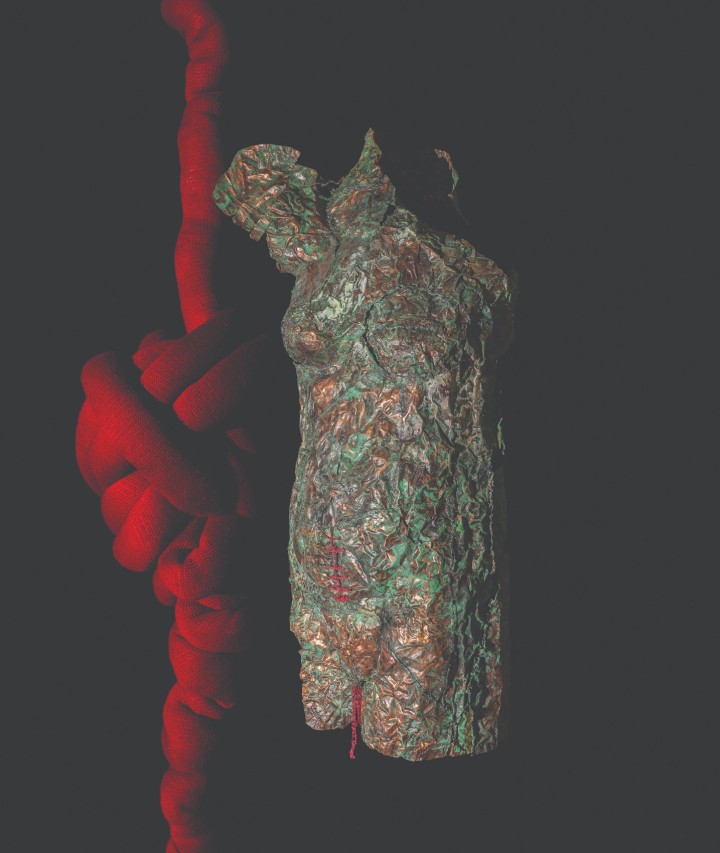 «Η θηλυκότητα, ως πεδίο μιας ιστορικά ατέρμονης διαπραγμάτευσης για χειραφέτηση και αυτοδιάθεση. Το γυναικείο σώμα, ως ένας κατεξοχήν πολιτικός τόπος όπου εγγράφονται σχέσεις εξουσίας, κοινωνικές νόρμες, έμφυλες ιεραρχίες και πολιτισμικές επιταγές. Ίχνη οδύνης και επιβίωσης, καταπίεσης και σθένους, μαρτυρίας και διαμαρτυρίας. Όλα συμπλέκονται στο No Excuse#2 της Ειρήνης Βαζούκου, η οποία επανέρχεται και επεκτείνει την πολυετή έρευνά της γύρω από τις διαθεματικές διακρίσεις κατά της γυναικείας ταυτότητας — διακρίσεις ταξικές, φυλετικές, ηλικιακές, σεξουαλικού προσανατολισμού, κ.ά. Η καλλιτεχνική της φόρμουλα μετασχηματίζεται δυναμικά ανάλογα με το εννοιολογικό φορτίο και την αισθητική της αναζήτηση: από την αμεσότητα της ζωγραφικής χειρονομίας έως την τριδιάστατη υλικότητα των κατασκευών και των εγκαταστάσεων. Μέσα από αυτή την πολυφωνία μέσων, η Βαζούκου καρφώνει το βλέμμα της στον πατριαρχικό "κανόνα" και την αντικειμενοποίηση. Χαρτογραφεί, με συμβολισμούς πολύσημους, την ανατομία των μηχανισμών παραγωγής και ελέγχου της γυναικείας εμπειρίας. Αποδομώντας τις κυρίαρχες αφηγήσεις για την "ενσωματωμένη" θηλυκότητα, δημιουργεί έναν χώρο όπου ο θεατής καλείται να αντιμετωπίσει το τραύμα ως πεδίο συλλογικής ευθύνης. Με το NoExcuse#2, η Βαζούκου συμβάλλει δημιουργικά στον διάλογο για την κοινωνική δικαιοσύνη, καθιστώντας ορατές τις αθέατες πτυχές της κακοποίησης και της έμφυλης βίας, αφήνοντας ταυτόχρονα το έργο της ανοιχτό σε πολλαπλές, συχνά λυτρωτικές, αναγνώσεις».