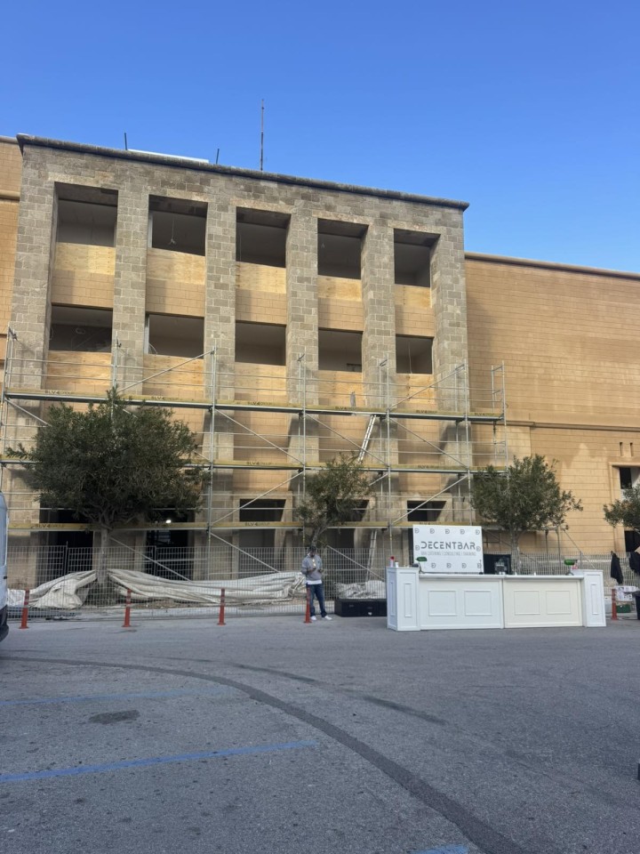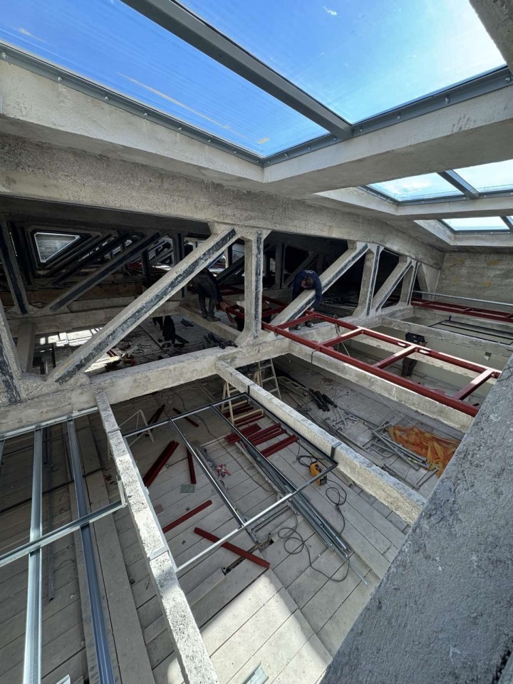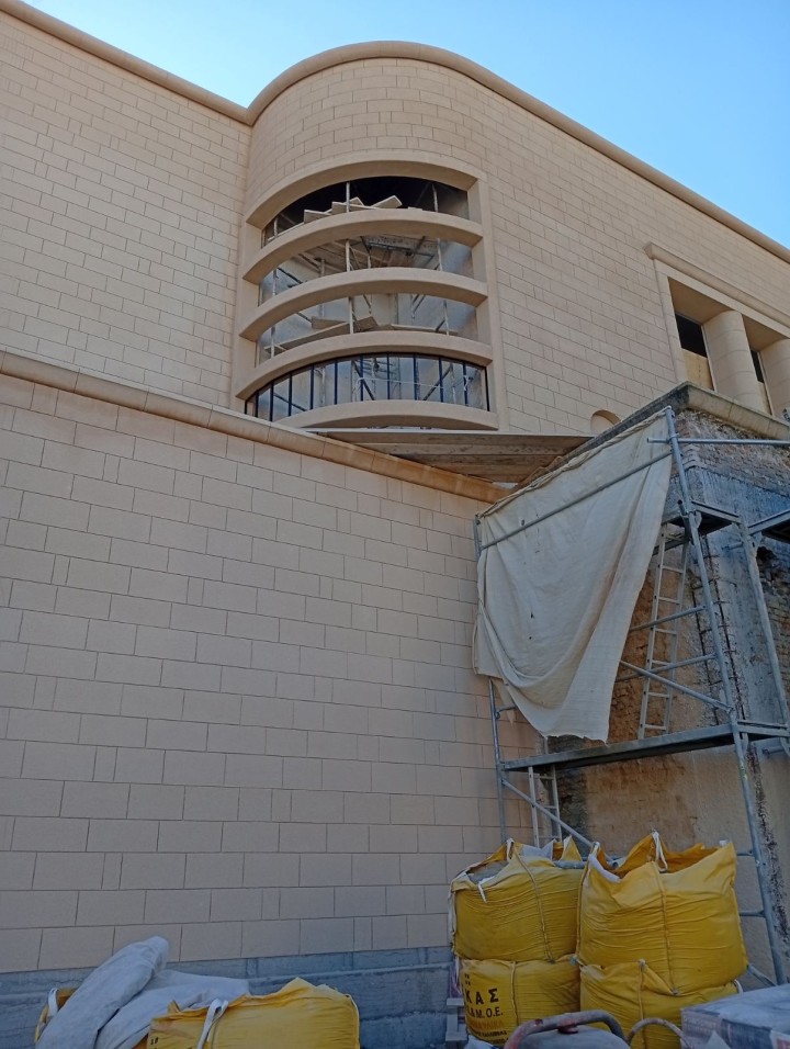 «Το έργο προχωρά με πάρα πολύ καλό ρυθμό. Είμαστε πραγματικά ευχαριστημένοι. Το χρονοδιάγραμμα τηρείται», ανέφερε χαρακτηριστικά, επισημαίνοντας ότι η απομάκρυνση των εσωτερικών και εξωτερικών ικριωμάτων επιτρέπει πλέον στο κτήριο να αποκαλύπτει σταδιακά τη νέα του μορφή.