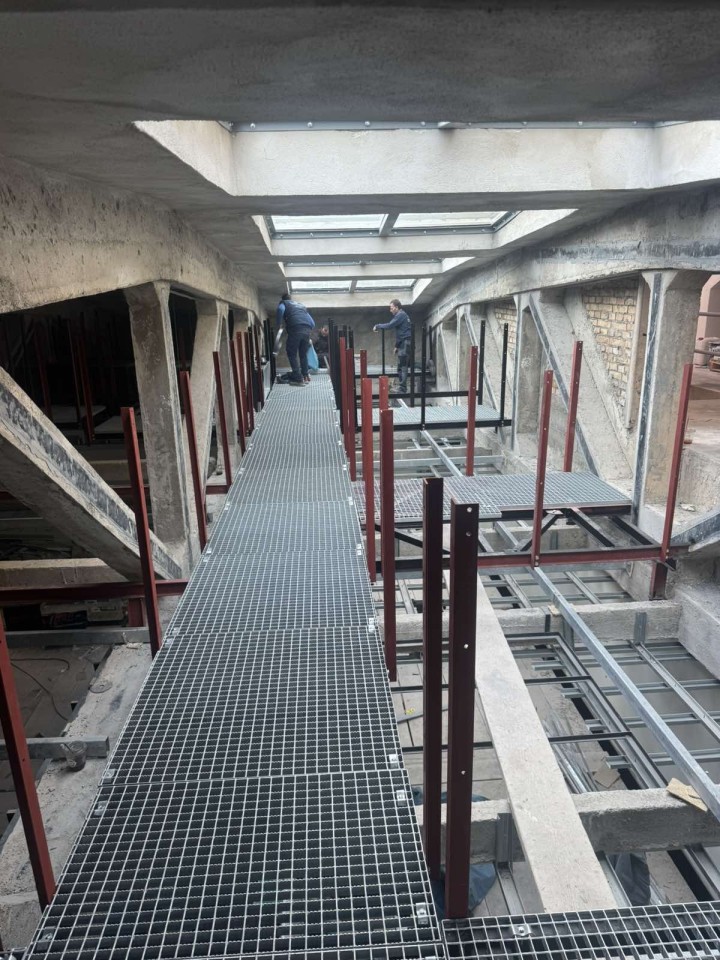 Από τις πλέον σύνθετες εργασίες ήταν εκείνες στην οροφή. Κατασκευάστηκαν μεταλλικοί διάδρομοι για την πρόσβαση τεχνικών φωτισμού και συντήρησης, εξασφαλίζοντας μόνιμη προσπελασιμότητα στα σύγχρονα συστήματα σκίασης, ηλιασμού και αερισμού.