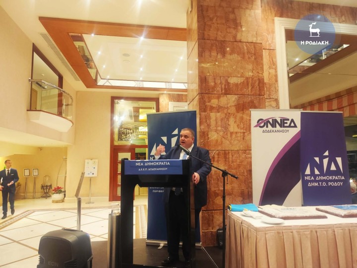 Αρχικά, εξέφρασε τη συγκίνησή του καθώς έχει ιδιαίτερη αγάπη για τη Ρόδο ενώ ευχαρίστησε τα στελέχη για τους αγώνες τους. Μάλιστα, έκανε ιδιαίτερα αναφορά στο ποσοστό που έδωσε η Δωδεκάνησος στη Νέα Δημοκρατία τις τελευταίες εκλογές λέγοντας ότι τον Μάιο του 2023, 52.240 Δωδεκανήσιοι προσήλθαν στην κάλπη και έδωσαν ισχυρή λαϊκή εντολή στη Νέα Δημοκρατία και τον Κυριάκο Μητσοτάκη να συνεχίσει για μία ακόμα τετραετία στο τιμόνι της χώρας.