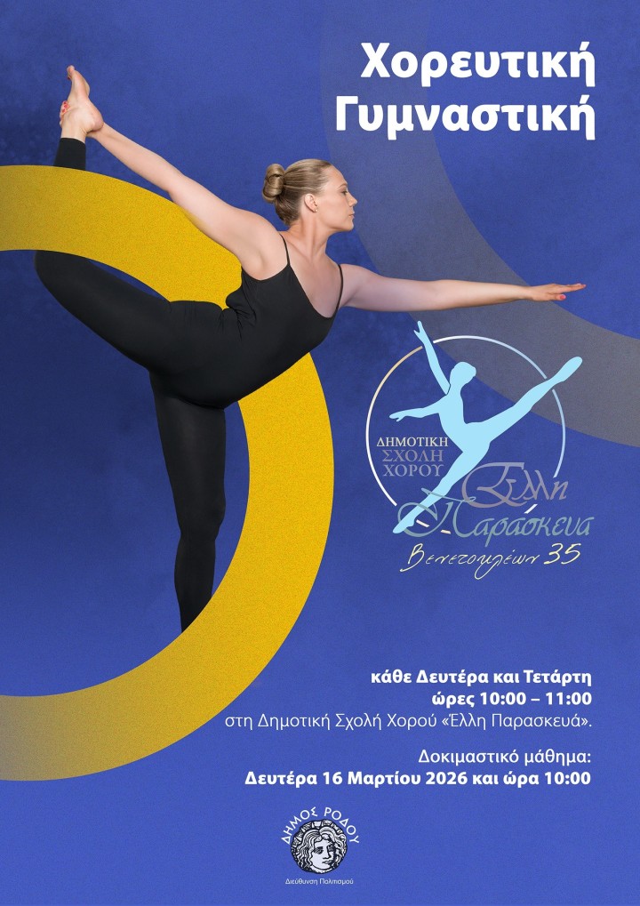 Η Διεύθυνση Πολιτισμού του δήμου Ρόδου, στο πλαίσιο των εργαστηρίων της, ανακοινώνει την πρόθεσή της να δημιουργήσει πρωινό τμήμα χορευτικής γυμναστικής.