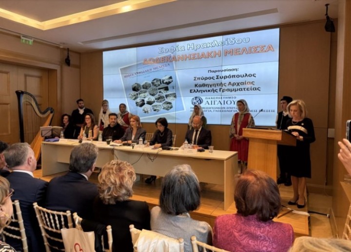 - Ο καθηγητής κ. Συρόπουλος, ο οποίος ανέδειξε την κοινωνική και εθνική διάσταση του έργου της «Δωδεκανησιακής Μέλισσας».