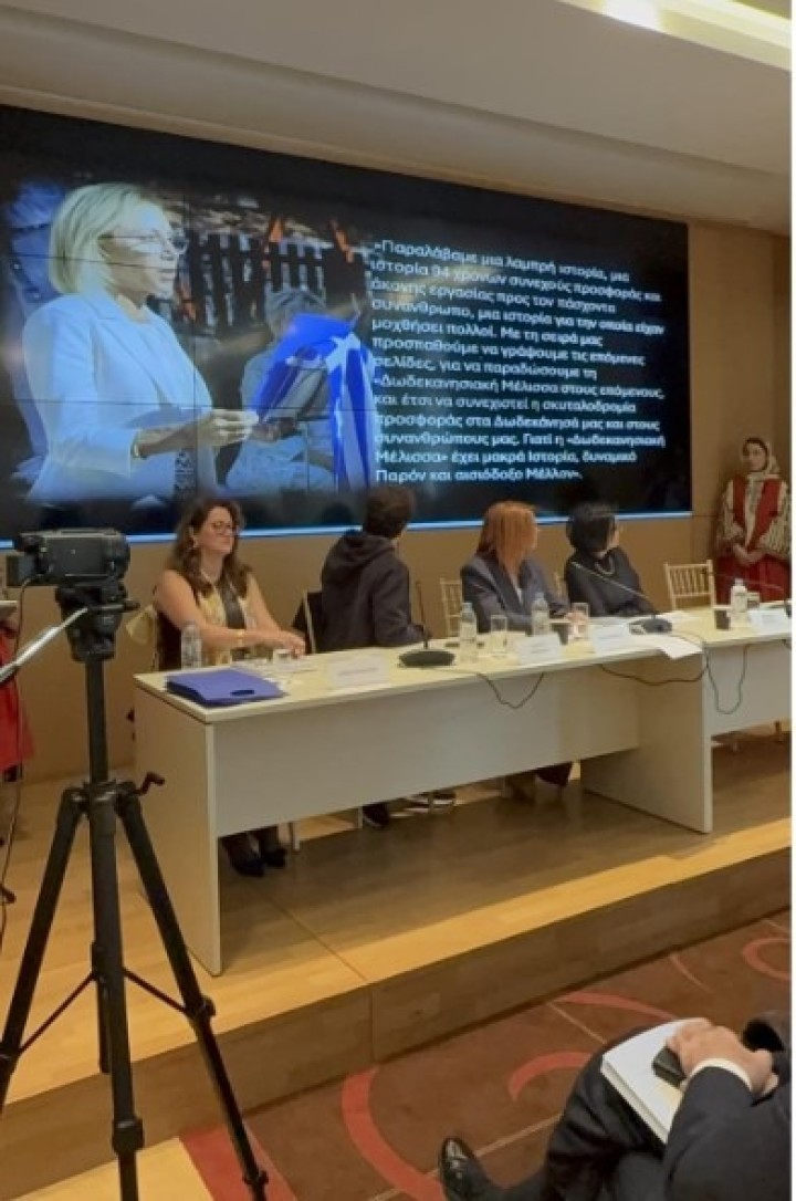 Την παρουσίαση άνοιξε η πρόεδρος του Σωματείου, κ. Μαίρη Μοσχή, η οποία στον ιδιαίτερα συγκινητικό χαιρετισμό της αναφέρθηκε στο όραμα των ιδρυτριών και στη διαχρονική δέσμευση της «Δωδεκανησιακής Μέλισσας» να στηρίζει τα όνειρα των παιδιών της Δωδεκανήσου: «95 χρόνια πριν, μια ομάδα πρωτοπόρων γυναικών έσπειρε τον σπόρο της αλληλεγγύης. Σήμερα, αυτός ο σπόρος έχει γίνει ένα δέντρο που αγκαλιάζει ολόκληρη τη Δωδεκάνησο», ανέφερε η κα Μοσχή.