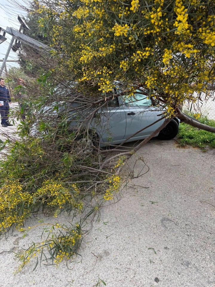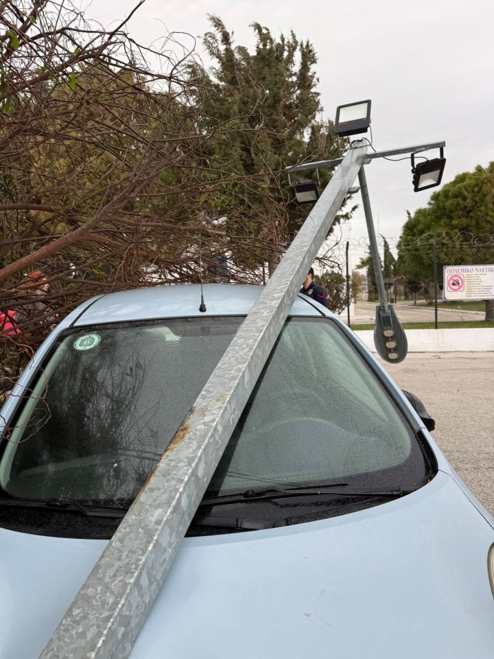 Δύο κολώνες φωτισμού, η μία στη Σορωνή η άλλη στις εγκαταστάσεις του στρατού κοντά στην Αγία Μαρία επί της Ρόδου Καλλιθέας, ξήλωσαν τα μποφόρ που κυριαρχούν τις τελευταίες ώρες.