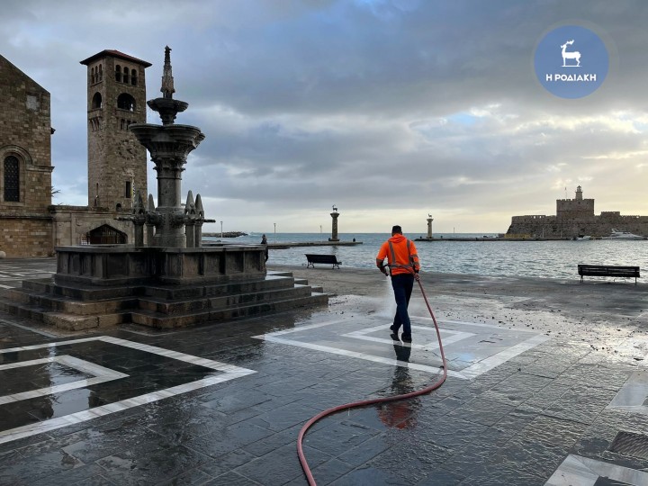 Όπως αναφέρεται σε σχετική ανάρτηση των στελεχών του δήμου της Ρόδου Νίκου Πίτση και Μανώλη Κρητικού: «συνεργεία της Διεύθυνσης Καθαριότητας του δήμου Ρόδου σε συνεργασία με την Πολιτική Προστασία με Μηχανήματα και με ανθρώπινο δυναμικό βρίσκονται έξω στους δρόμους και επιχειρούν σε διάφορα σημεία της πόλης καθαρισμούς.