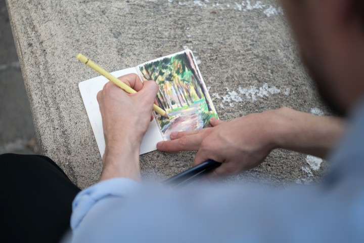 Παράλληλα, μια δεύτερη έκθεση, με τίτλο “Following the Light”, παρουσιάζει το έργο του εικονογράφου Clément Thoby, εμπνευσμένο από την καλλιτεχνική διαμονή του στη Ρόδο. Τα έργα του λειτουργούν ως ένα εικαστικό ημερολόγιο, όπου αποτυπώνονται εντυπώσεις, εικόνες και αφηγήσεις των τόπων που επισκέπτεται. Με ευαισθησία και αμεσότητα, ο καλλιτέχνης μετατρέπει την εμπειρία του ταξιδιού σε μια προσωπική, οπτική αφήγηση.