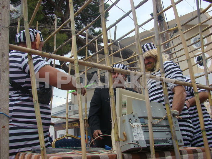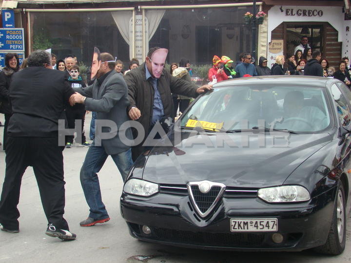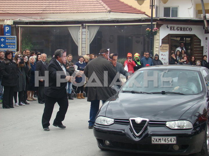Φυσικά επρόκειτο για σκηνοθετημένο επεισόδιο, το οποίο προκάλεσε άφθονο γέλιο στον κόσμο, στο πλαίσιο του καρναβαλιού που πραγματοποιήθηκε και τις φετινές απόκριες στην πλατεία της Λάρδου και περιελάμβανε την παρέλαση πεζοπόρων τμημάτων και αρμάτων.