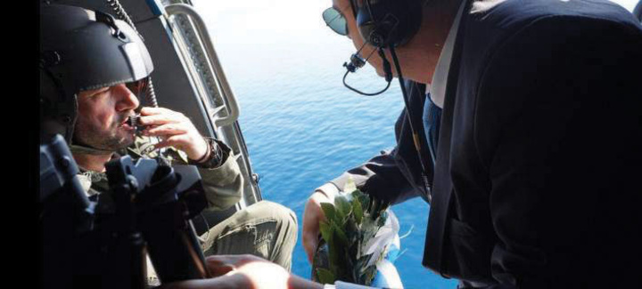 Ο Υπουργός Εθνικής Άμυνας Πάνος Καμμένος συνοδευόμενος από τον Αρχηγό ΓΕΕΘΑ Ναύαρχο Ευάγγελο Αποστολάκη ΠΝ και τον Αρχηγό ΓΕΝ Αντιναύαρχο Γεώργιο Γιακουμάκη ΠΝ πραγματοποίησε ρίψη στεφάνου στο θαλάσσιο χώρο των Ιμίων όπου το 1996 έπεσαν οι τρεις ήρωες Έλληνες αξιωματικοί του Πολεμικού Ναυτικού.