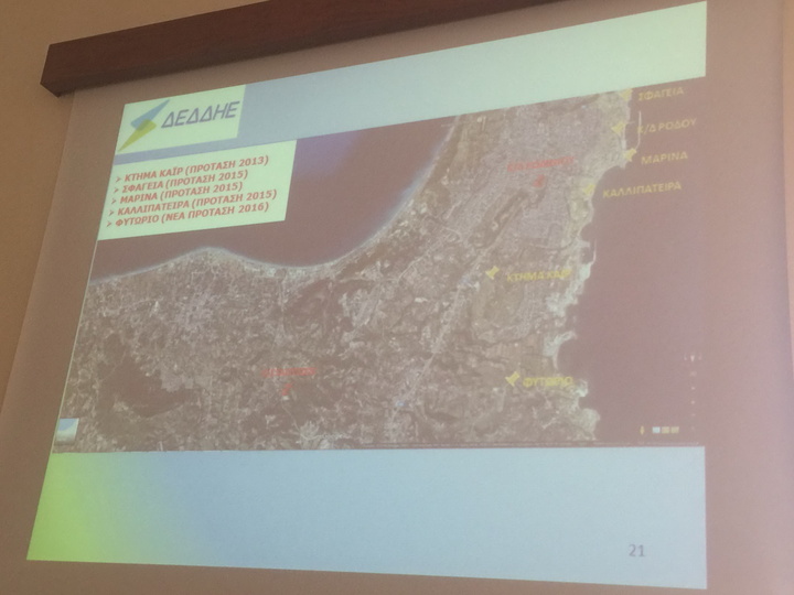 Στη συνεδρίαση στην οποία μετείχε εκπρόσωπος του Υπουργείου Ενέργειας και Περιβάλλοντος καθώς και υψηλόβαθμα στελέχη του ΔΕΔΔΗΕ, εξετάστηκε η απόφαση του Δημοτικού Συμβουλίου Ρόδου να προταθούν εναλλακτικές θέσεις κατασκευής του υποσταθμού, πλην αυτής του Αγίου Νικολάου στην οποία εξακολουθεί να εμμένει η ΔΕΔΔΗΕ, αλλά και θέσεων εντός του πολεοδομικού ιστού.
