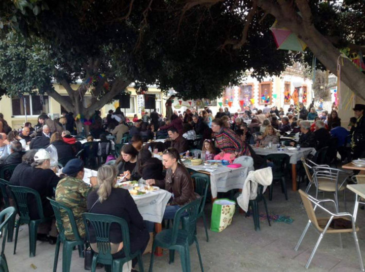 Η πλατεία στολισμένη, ο καρνάβαλος ξανά στη θέση του και ο κόσμος να συρρέει από όλο το νησί για να περάσει μία ευχάριστη μέρα στο χωριό με πολύ φαγητό, πολύ χορό και διασκέδαση.